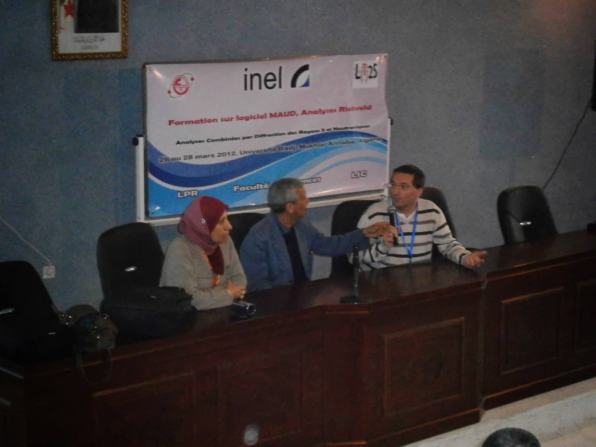 This Workshop was organised at the Univ. B. Mokthar, Annaba, Algeria, by S. Alleg (Univ. Annaba), E. Berthier (INEL), L. Lutterotti (Univ. Trento), D. Chateigner (IUT Caen), M. Morales (Univ. Caen) and S. Ouhenia (Univ. Bejaia)