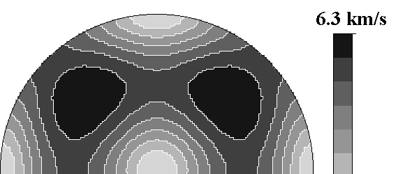 p wave velocity surface of a single crystal of pure Ni. Main axes of the cubic structure are aligned parallel to the main axes of the projection.